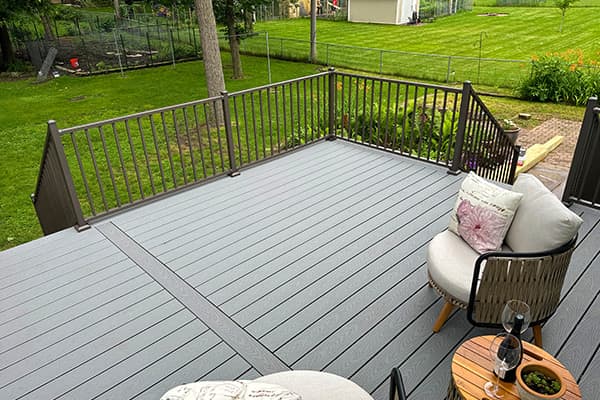 A 26×16 freestanding deck in Eden Prairie, designed on-site to overcome structural challenges and deliver a result the homeowners loved.